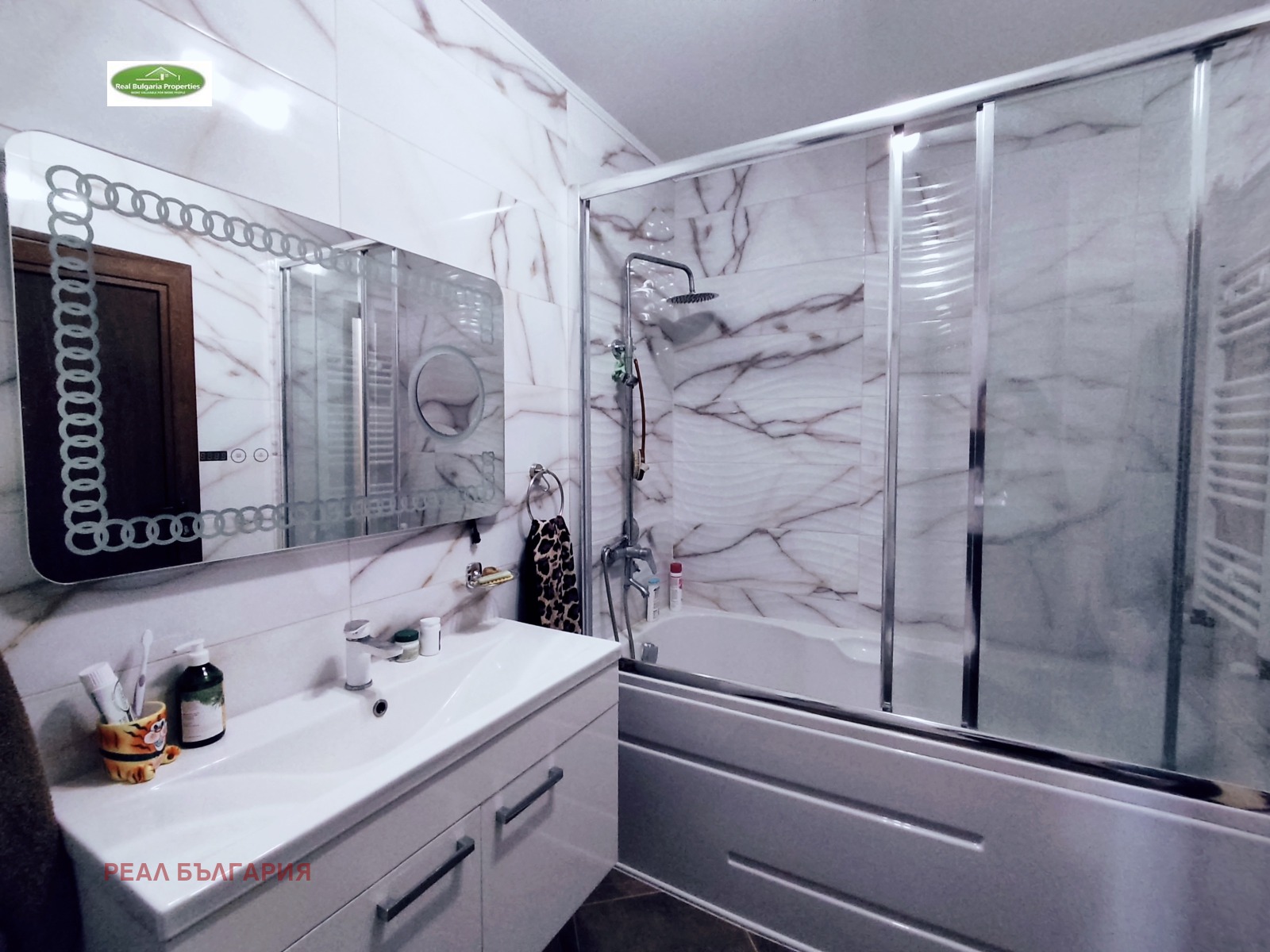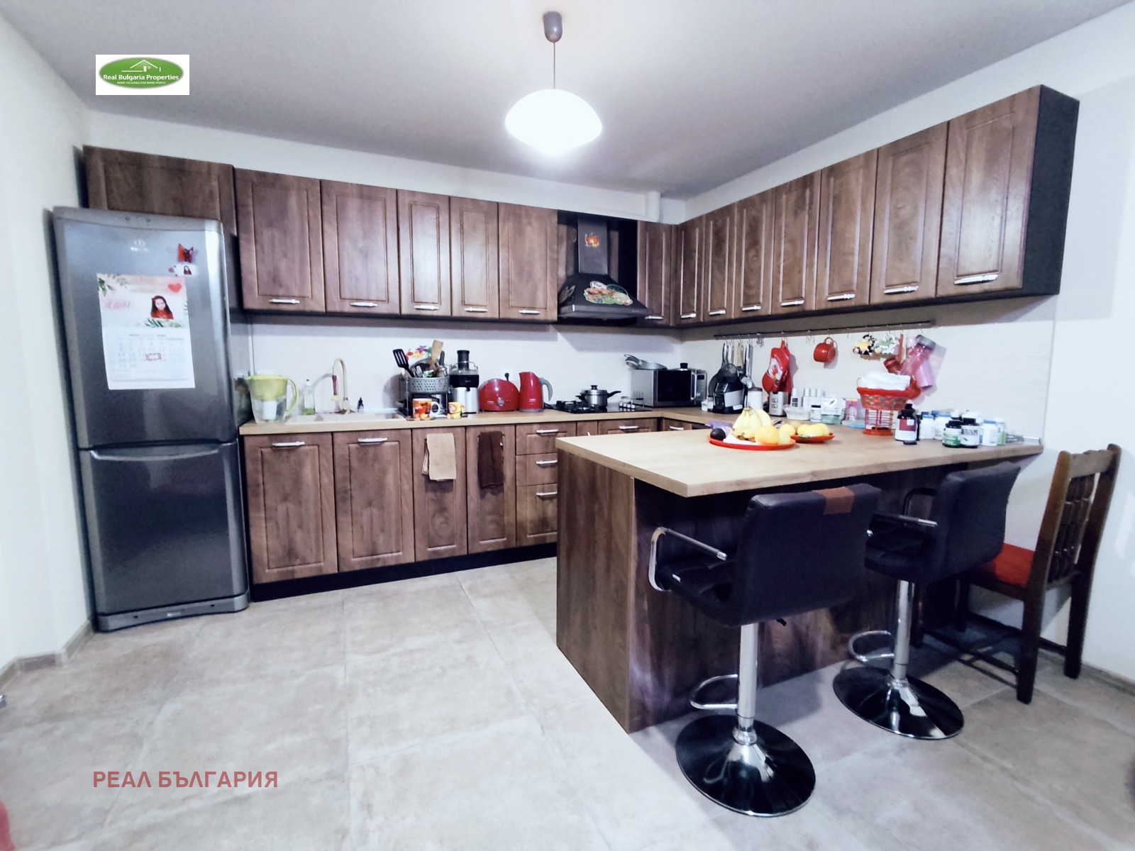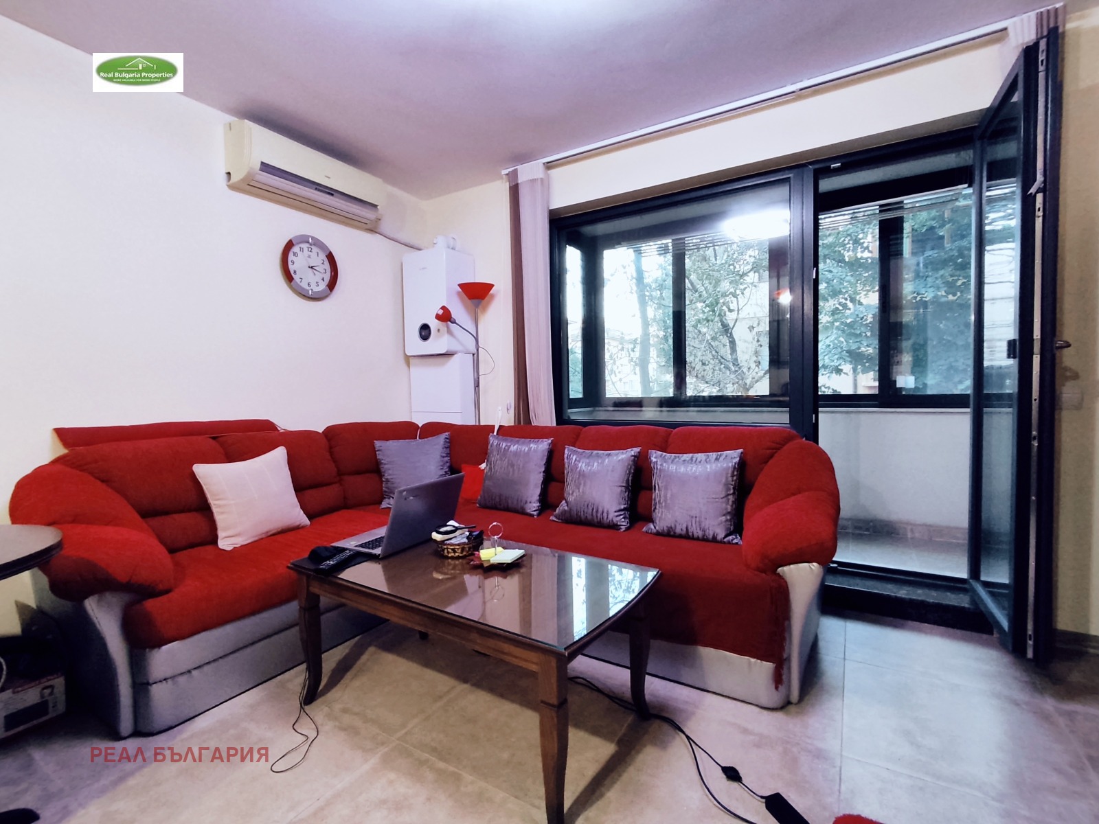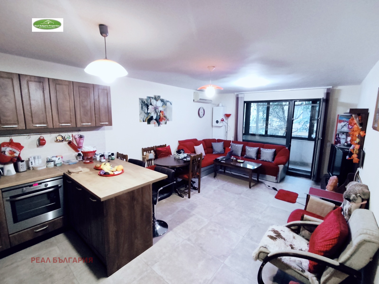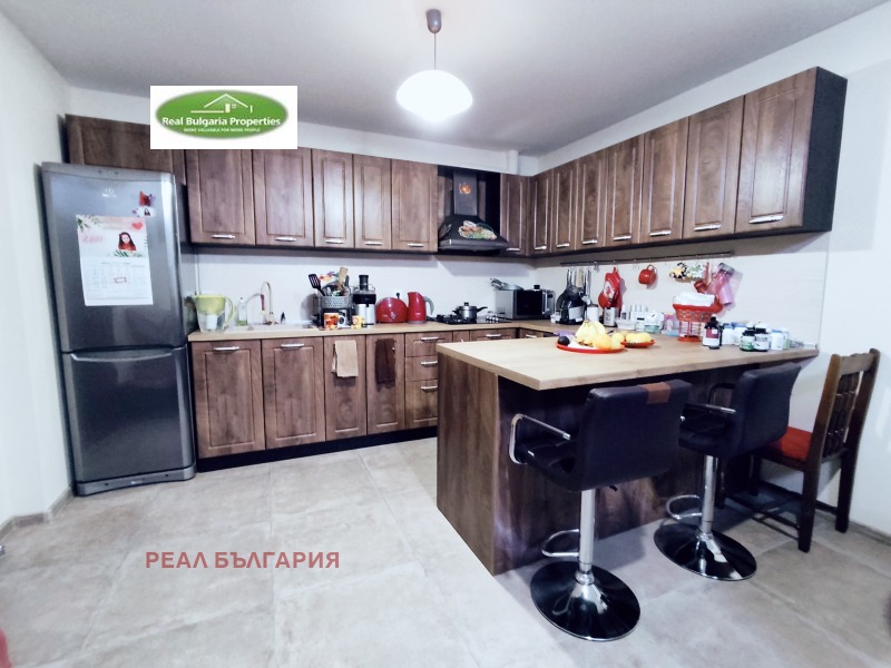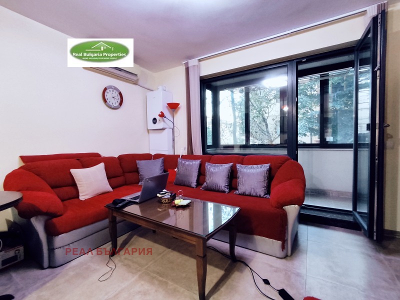 РЕАЛ БЪЛГАРИЯ продава отличен, тристаен апартамент в ТОП център на града, в непосредствена близост до Общината и Операта. Жилищната сграда е ново строителство /2023г./ с модерна визия, луксозни общи части, безшумен хидравличен асансьор и др. екстри. Апартаментът е с площ 120 кв.м. и включва: коридор, кухня с всекидневна и излаз на закрита тераса, детска стая, родителска спалня със закрита тераса, баня, 2 санитарни възела и допълнително сервизно помещение. Имотът е модерен и комфортен, разположен на 1-ви жилищен етаж /над офиси/ от общо 5 етажна сграда. Жилището е напълно обзаведено с мебели и ел. уреди включени в цената. Отоплението е на газ, охлаждането е посредством 2 бр. инверторни климатика. Вложени са висок клас материали с гарантирано качество: италиански теракот, висококачествен ламинат, интериорни врати, блиндирана входна врата, поръчкови мебели и кухня с всички необходими ел. уреди, санитария висок клас, первази от гранит, 7-камерна ПВЦ дограма с троен стъклопакет. Видеонаблюдение.