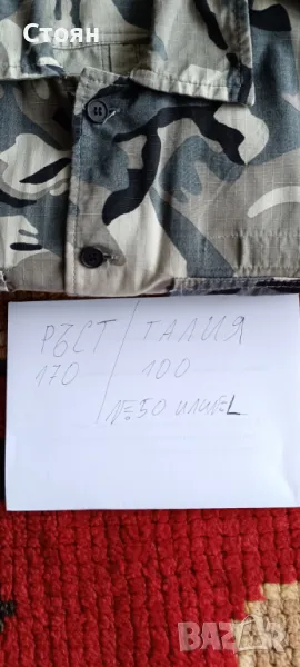 МАСКИРОВЪЧНА РИЗА - НОВА РАЗМЕРА Е РЪСТ-170 /100-TAЛИЯ . ОТГОВАРЯ НА НОМЕР - 50 .ПО ЗАПАДНИТЕ СТАНДАРТИ - L