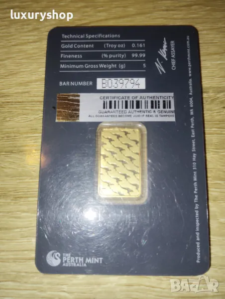 Златно кюлче 5 грама Perth Mint