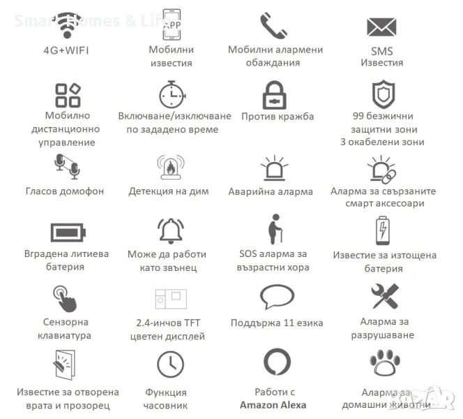 WiFi / GSM Смарт професионална Алармена система + сензор за дим и вода