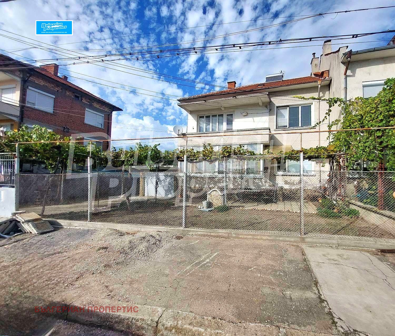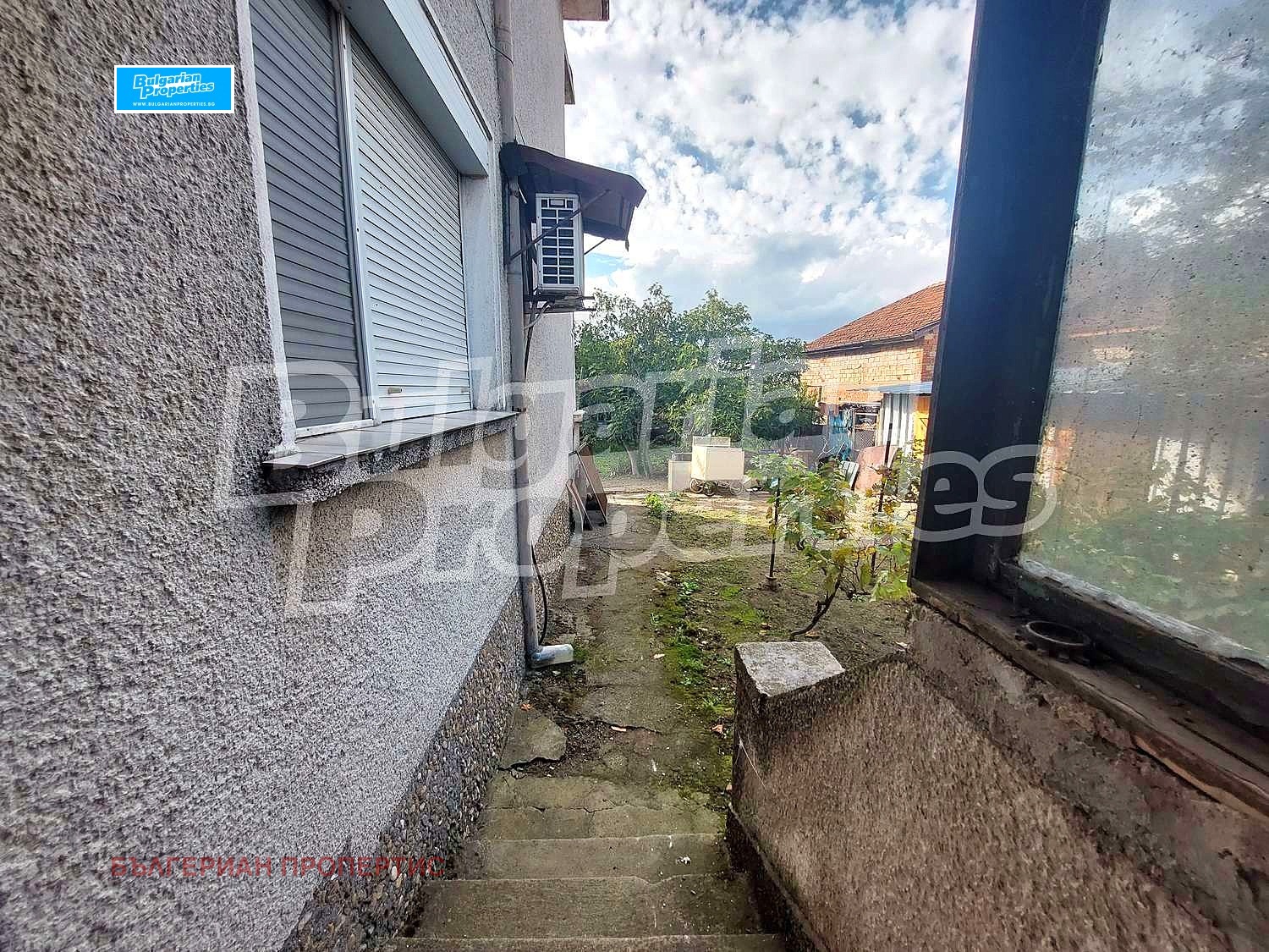 Дворът е 209 кв.м. (от общо 418 кв.м.) като е разделен поравно между двата етажа. Подходящ е както за цветна градина, така и за паркомясто за един автомобил. В задната му част има няколко стопански постройки и много лозови насаждения.