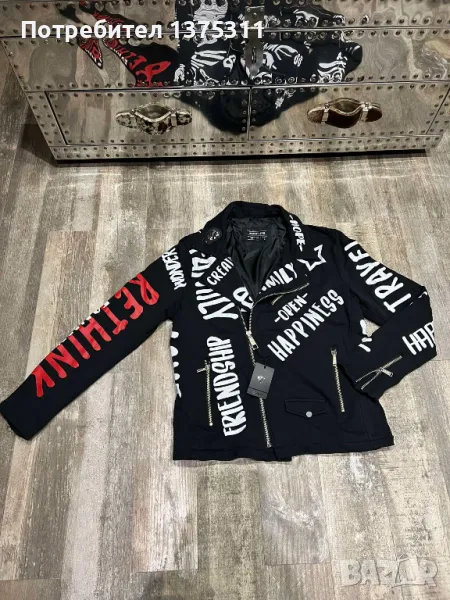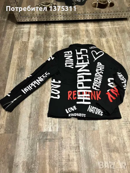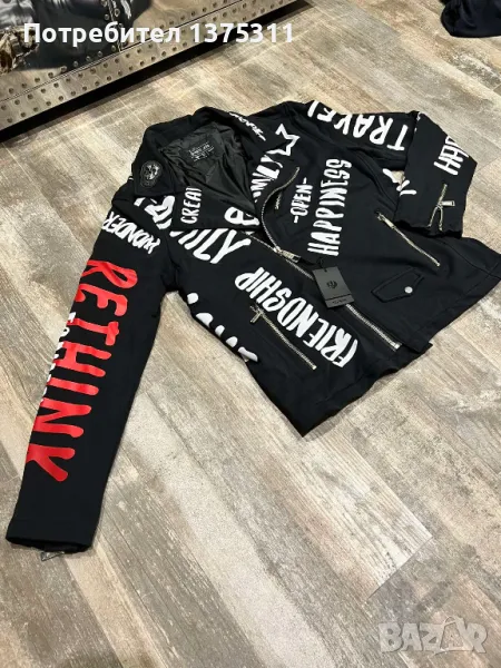 Спортно елегантно яке последен Л размер.Основно закопчаване с цип,както и на ръкавите също.Елегантен модел от еластична материя.
