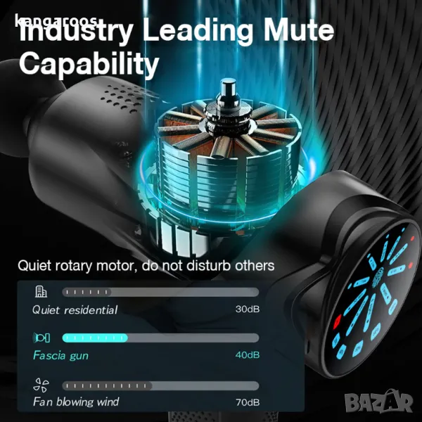 Ултра-преносим и безшумен перкусионен масажор за спортисти - Този пистолет за дълбок масаж на мускулите е ултра-компактен и лесен за хващане; супер тихият безчетков мотор, едва 45 db, го прави идеален за използване в дома, офиса или фитнеса.