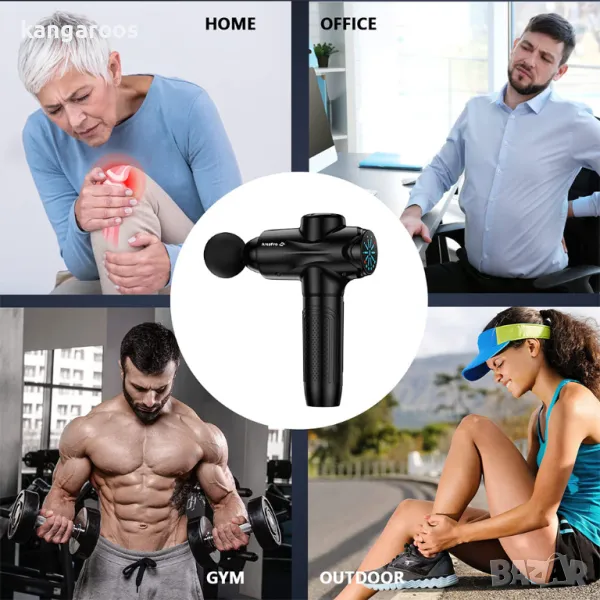 Мощен масажен пистолет: Този многофункционален перкусионен масажен пистолет отпуска дълбоките мускули след тренировка с мощно послание, ефективно облекчава вашата умора и болезненост, намалява сковаността на мускулите, насърчава кръвообращението и облекчава млечната киселина, събужда жизнеността на ума и тялото ви и поддържа оптимално състояние.