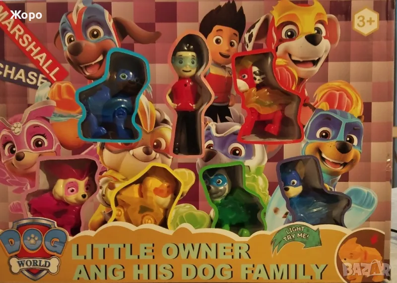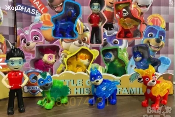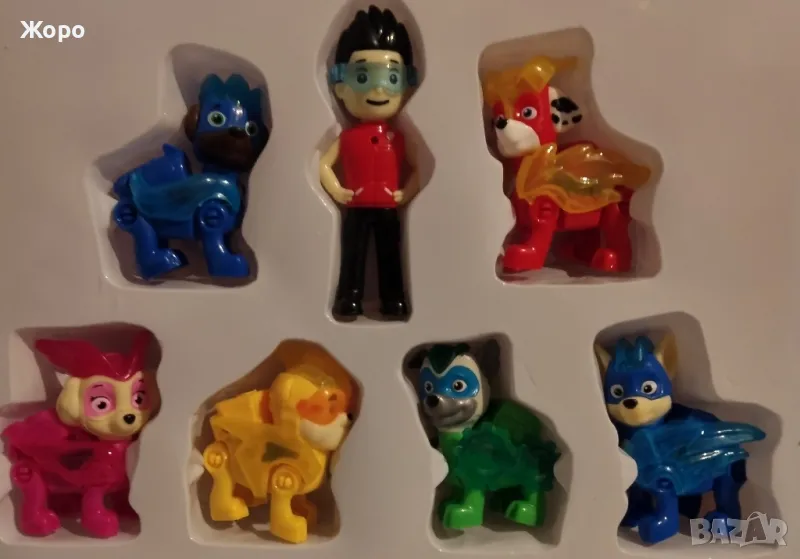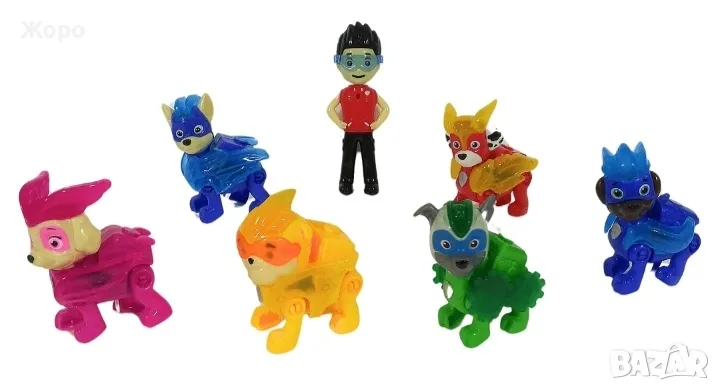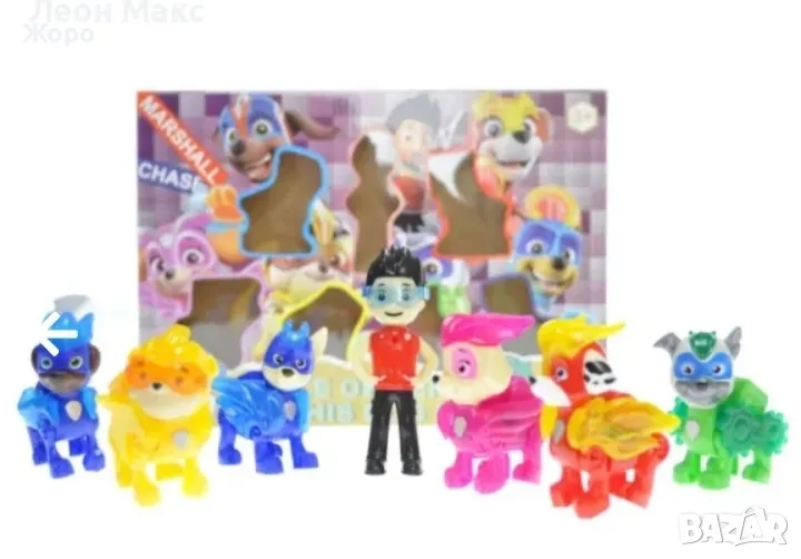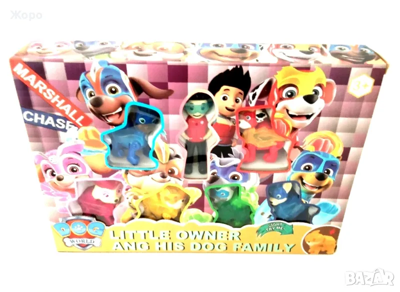Комплектът включва 7 фигурки на героите от Пес патрул.