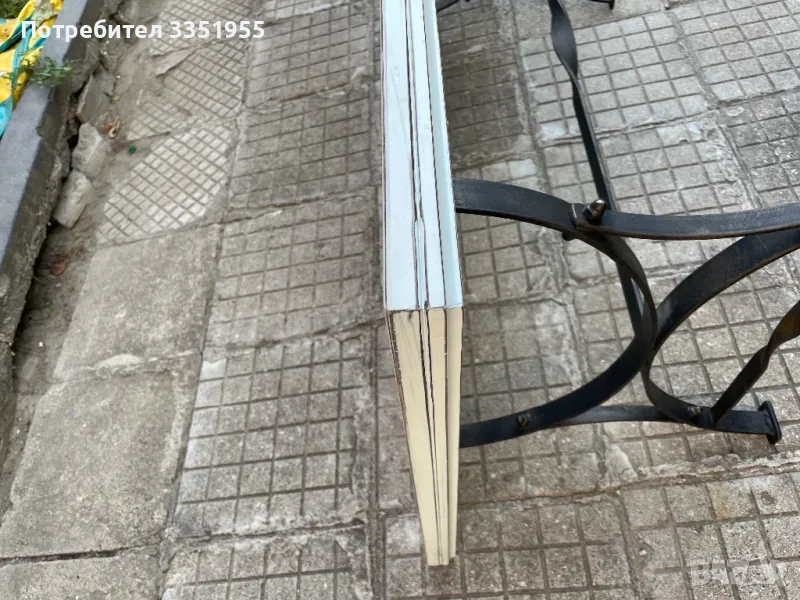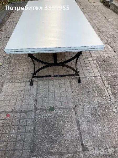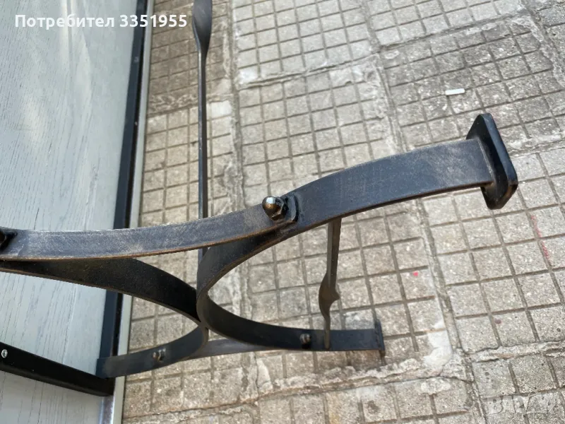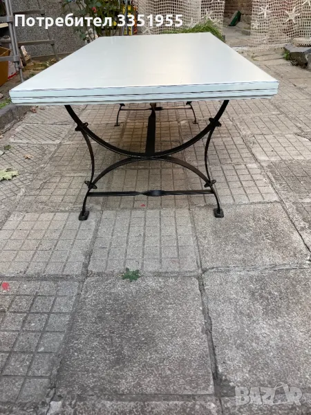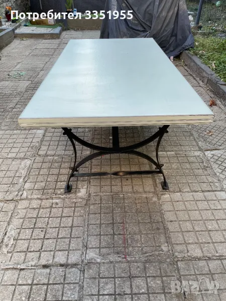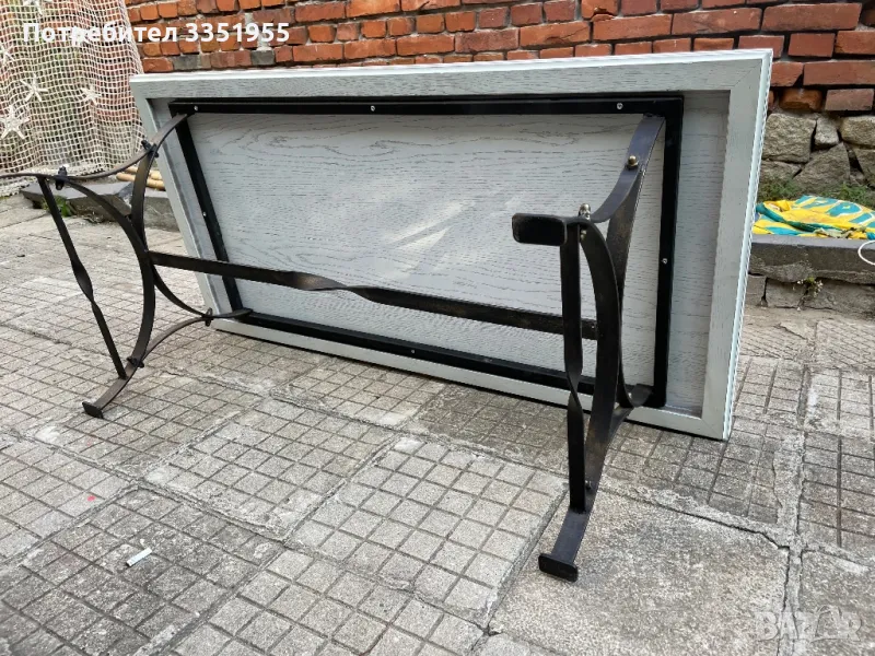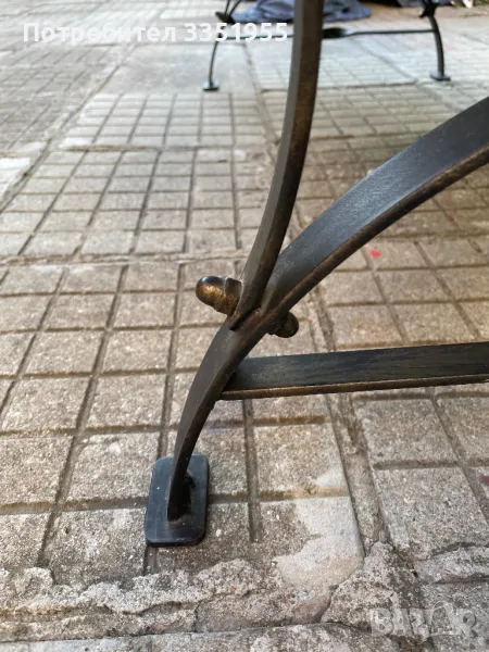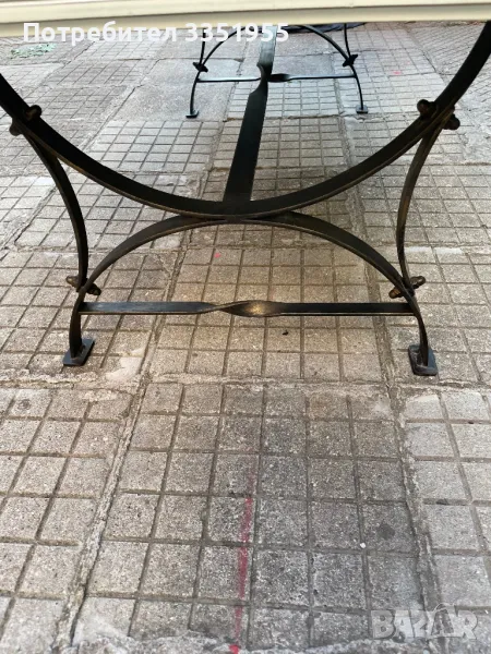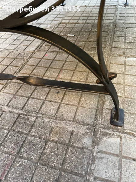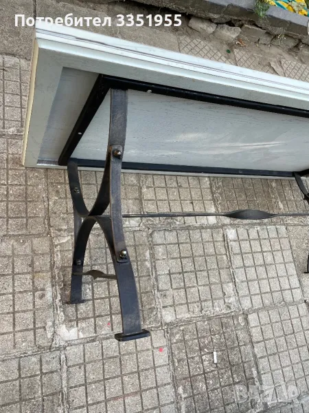 Изработена е от ковано желязо с красиви извити форми в черен мат с леко златно по ръбовете, плота е масив тежък и дебел плот. Размерите са 120/60 висока е 43см Пращам с куриер или лично за Пловдив
