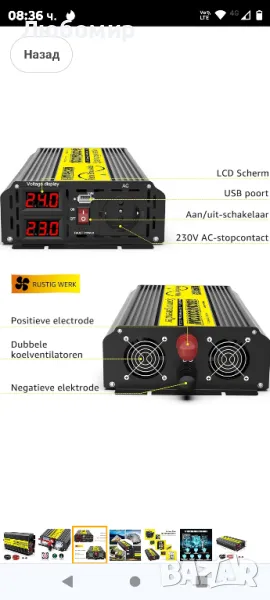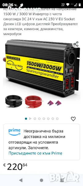 HJMAHOEN Преобразувател на напрежение 1500 W / 3000 W Инвертор с чиста синусоида DC 24 V към AC 230 V EU Socket Двоен LCD цифров дисплей Преобразувател за кемпери, камиони, домакинства, микробуси.Преобразува 24 V DC в най-високо качество 230 V AC. Преобразувателят съчетава висококачествена изработка с нискошумна технология и е напълно подходящ за работа на всички 230 V клеми благодарение на чистата синусоида. Осигурява по-добра защита за чувствителни устройства, по-малко звукови и електрически смущения и по-ниска консумация на енергия.2000 вата HJMAHOEN инвертор (WR) може да достави 16 ампера AC захранване чрез DC захранване. Можете да свържете щепсела Schuko директно към WR или да заредите мобилното устройство чрез USB вход. Плюс това, HJMAHOEN WR има ясен LED екран, който показва ампера и волтове в реално време. И ако устройството е дефектно, светодиодът може да покаже кода за грешка своевременно, което позволява по-точно отстраняване на неизправности.Този инвертор от 24V към 230V може да поддържа максимална моментална стартова мощност от 3000W, когато е включен. Обикновено може да работи непрекъснато на 1500 вата. Освен това устройството има различни функции за защита при зареждане, като ниско напрежение, пренапрежение, претоварване, прегряване, късо съединение, прекъсване на входа.Този инвертор също има режим на пестене на енергия, така че губи само 1,3 A в състояние на празен товар. Тъй като продуктът има вграден предпазител, не е необходимо да инсталирате друг.