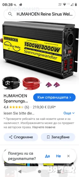 HJMAHOEN Преобразувател на напрежение 1500 W / 3000 W Инвертор с чиста синусоида