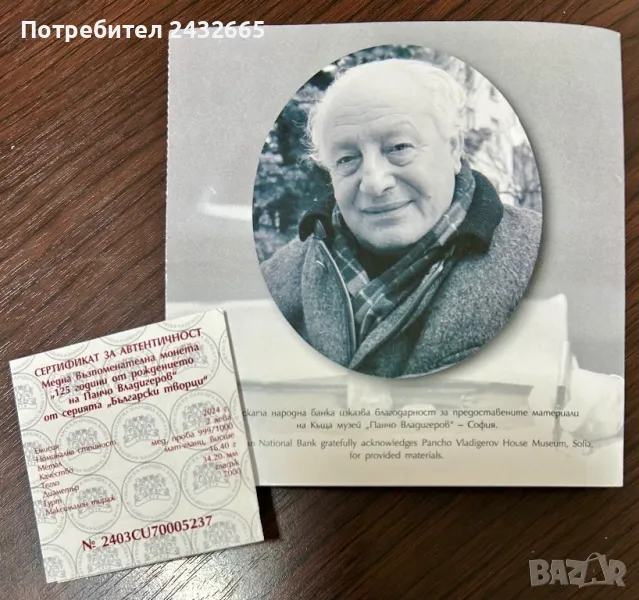 N4. България 2024 = Медна възпоменателна монета “ 125 г. от рожд. на Панчо Владигеров “