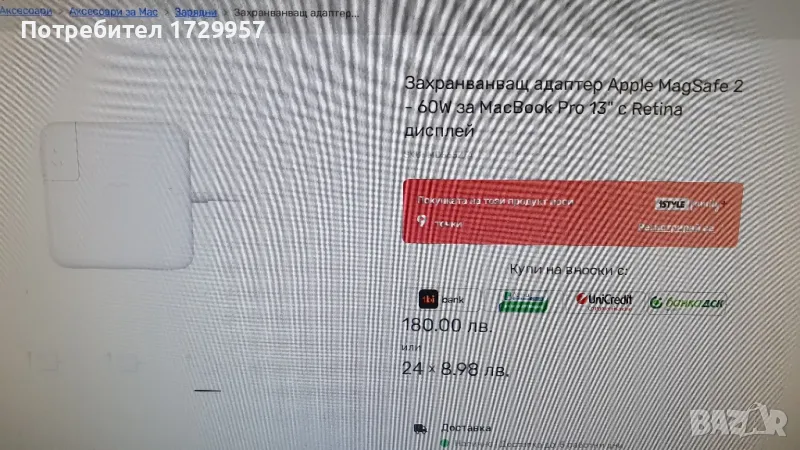 Оригинален - Адаптер Apple MagSafe 2 60W MacBook Pro 13" с Retina дисплей