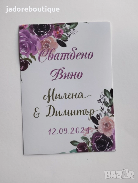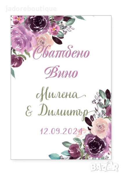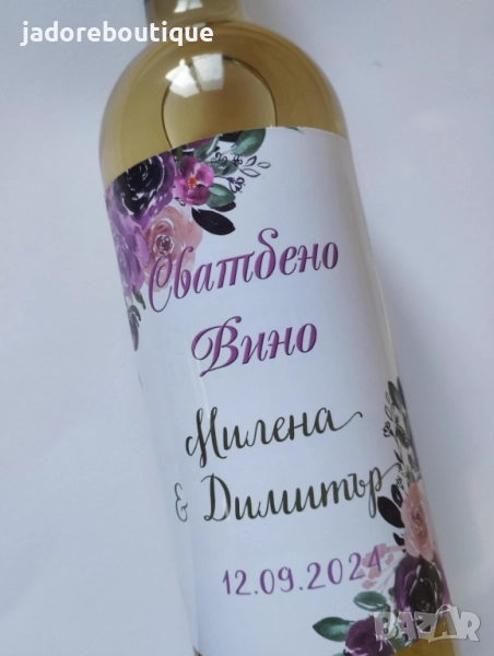 Елегантни персонализирани етикети за бутилки с флорален мотив. Подходящи за сватба, кръщене, юбилей, годеж, дипломиране, рожден ден и много други поводи.