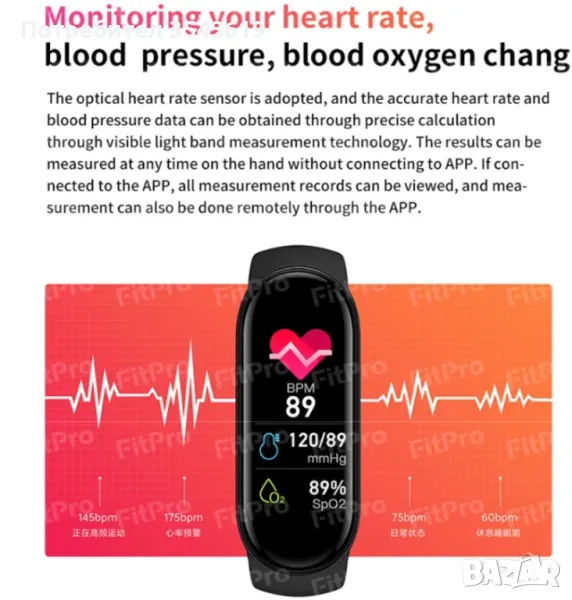 Най-нов модел с по-ярък, голям и добър дисплей + функция апарат за кръвно налягане. Въобще различна е от М5 и другите предлагани модели!