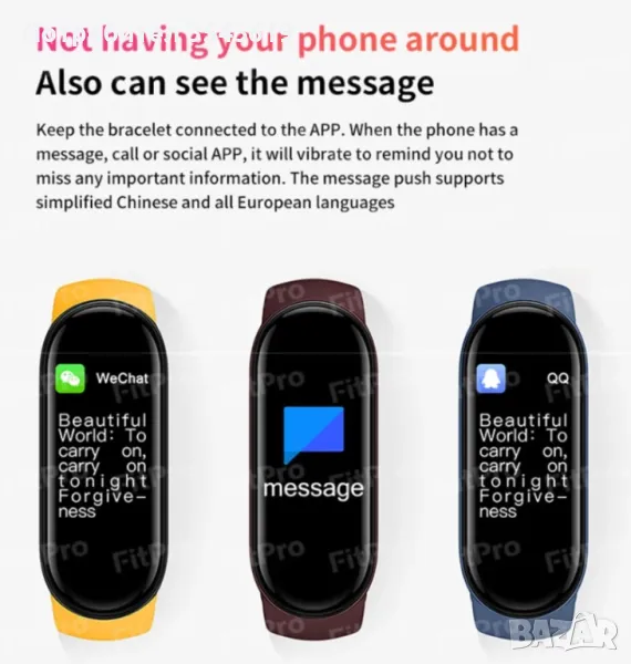 Освен функциите за проследяване на здравословното и физическото Ви състояние умната гривна има приложени опции за известяване при пропуснато повикване или съобщение. Тя е в постоянна връзка с Вашият смартфон, като дистанционно ще управлявате и камерата на телефона.