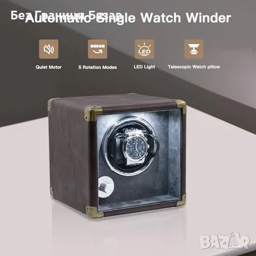 Елегантен дизайн: Луксозна PU кожа в кафяво и мек интериор, който предпазва часовника от надрасквания