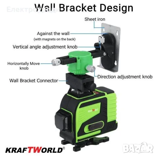 Работен обхват 3 градуса (При по голям ъгъл от 3 градуса нивелира издава звуков сигнал за невъзможност за нивелиране).