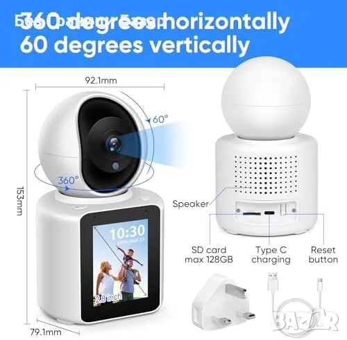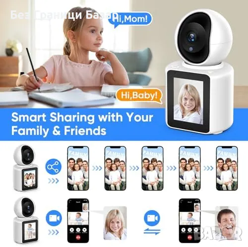 Двупосочна видео и аудио връзка за лесно общуване с деца, възрастни и домашни любимци.