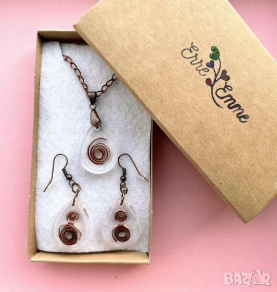 * Комплект колие и обеци. Капковидна форма на плочките с размери 2,5 см на 2 см