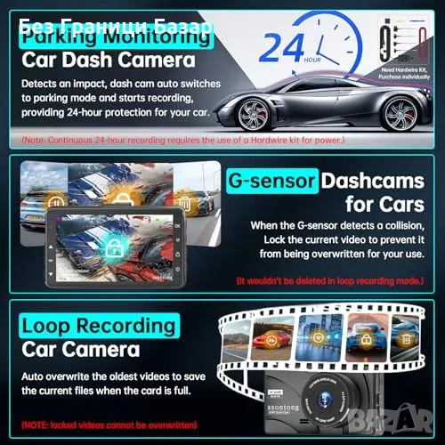 24-часов Паркинг Мониторинг: Автоматичен запис при паркиране за заснемане на важни детайли при инцидент.