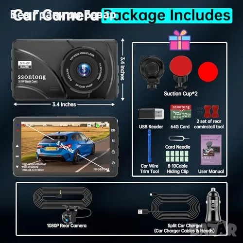 Нова 2K Dash Камера за Колa с WDR, G-сензор, 24ч Паркинг Мониторинг, 512GB