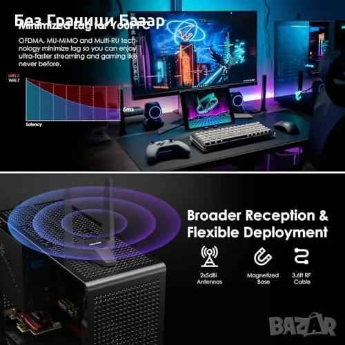 Нова Wi-Fi 7 технология: Достъп до модерната 6 GHz лента с до 320MHz широчина на канала за светкавични скорости.