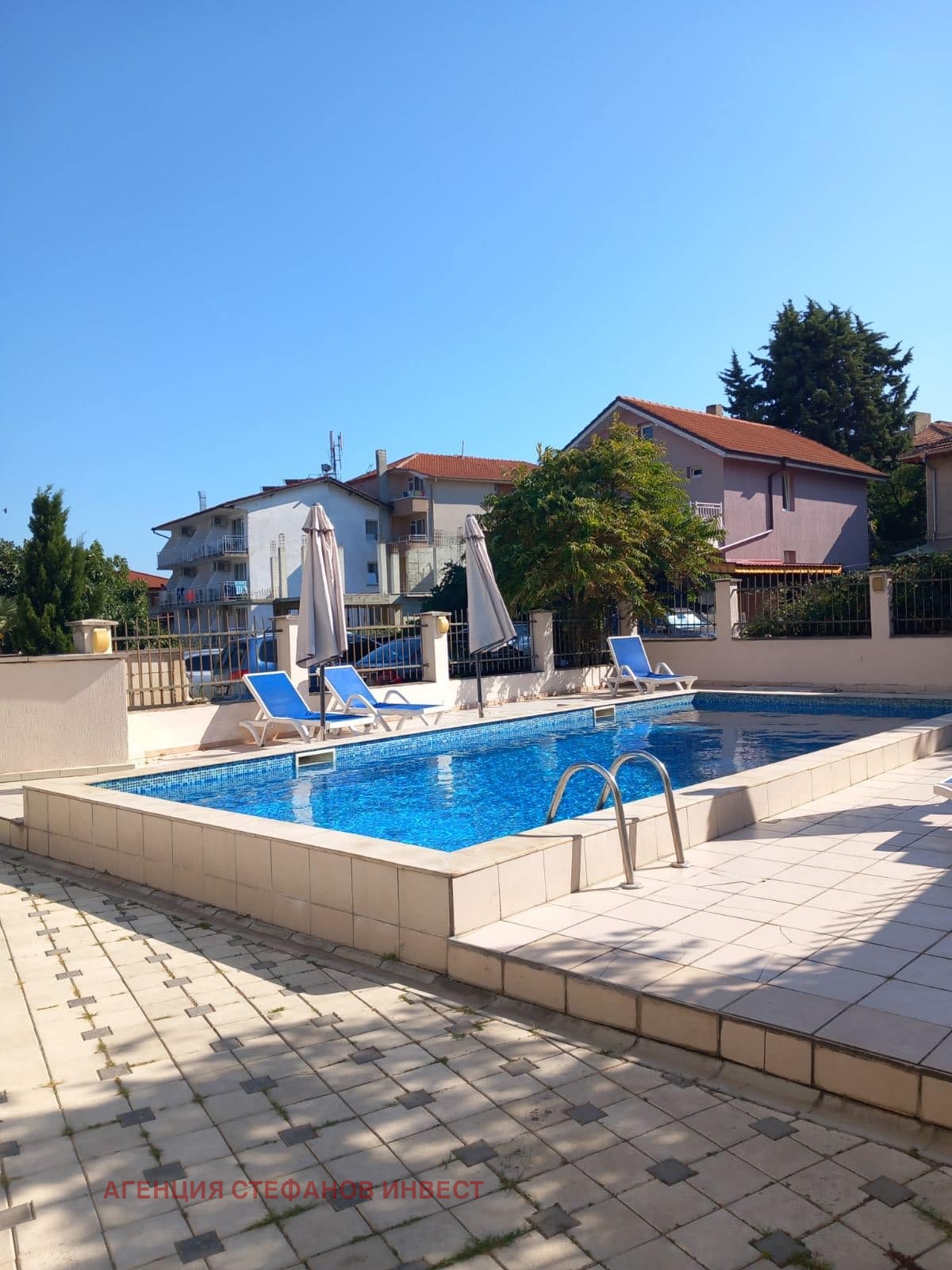 Комплекс от затворен тип с басейн (само за собственици).|Годишна такса поддръжка:7 Евро/м2.