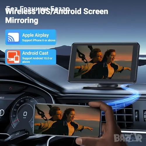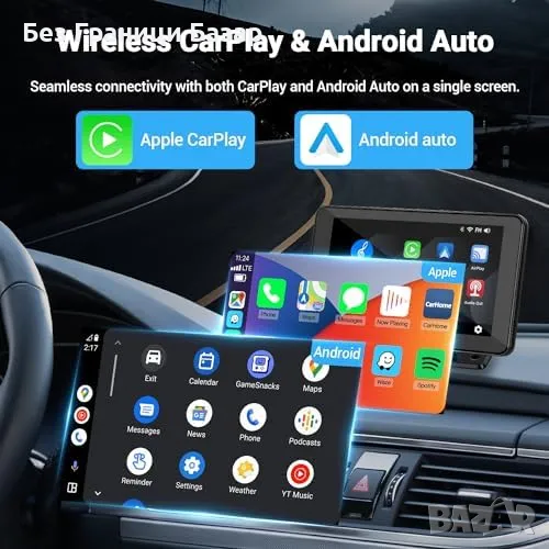 Безжичен Apple CarPlay и Android Auto: Лесно свързване за управление на музика, навигация и обаждания.