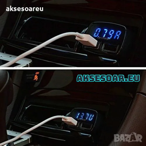 Ново 4 в 1 Двойно зарядно за кола Dual USB DC 5V 3.1A Универсален адаптер с тестер за измерване на н