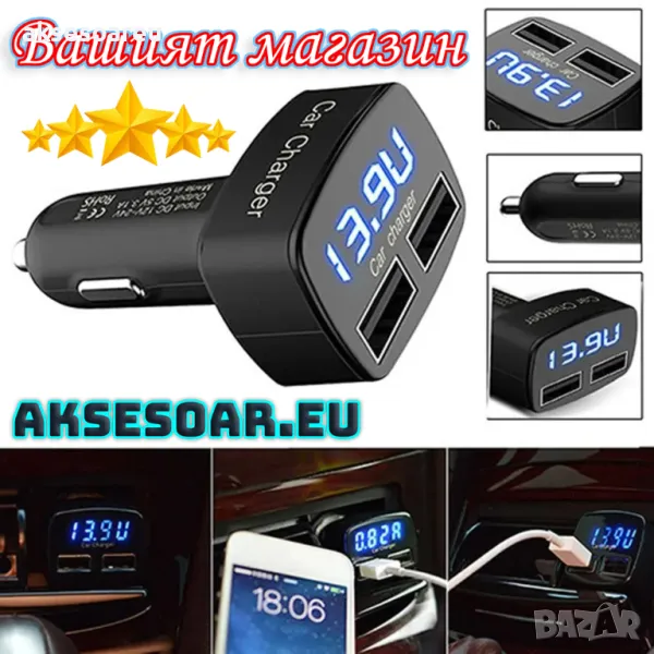 Ново 4 в 1 Двойно зарядно за кола Dual USB DC 5V 3.1A