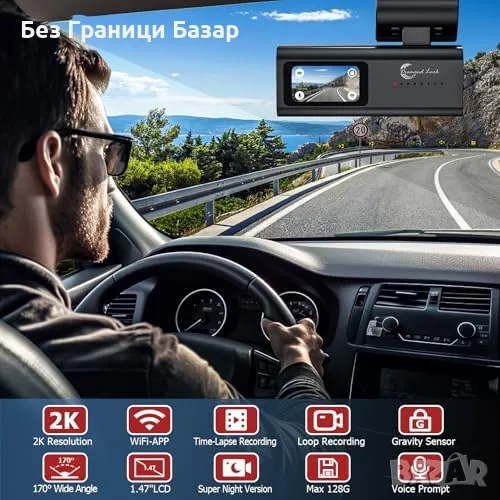 2K Full HD Запис: Заснема ясни, детайлни кадри в 1440p, идеални за регистрационни номера и пътни знаци.