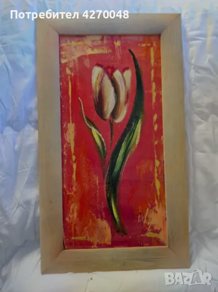 4. "Лале". Размер без рамка: 20х40 см. Изпълнена с маслени бои.