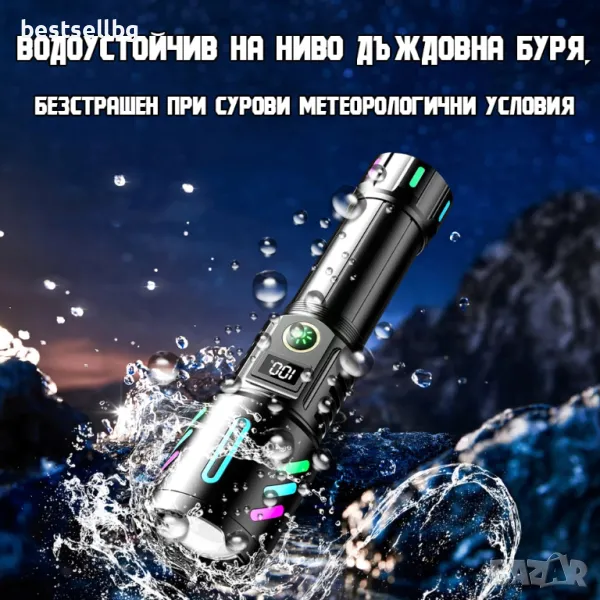 - 5 режима на осветление: Предлага гъвкавост за различни ситуации, от силна светлина за търсене до мигащ режим за сигнализация.