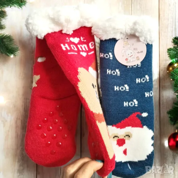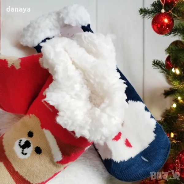 Топли детски чорапи, дебели коледни чорапи, чорапи с пух, зимни чорапи за деца, детски коледни аксесоари, 18-20 номер чорапи, уютни детски чорапи, пухкави чорапи за зима, празнични детски чорапи, коледни подаръци за деца