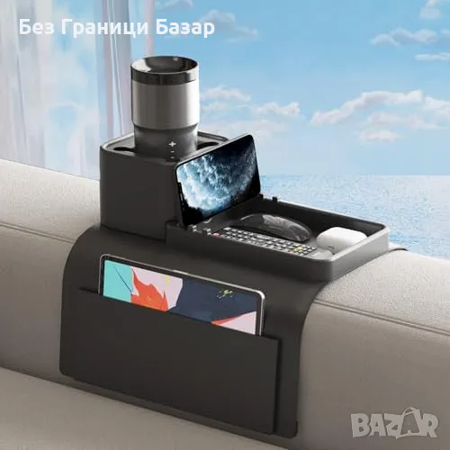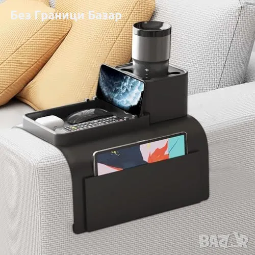 Нов Силиконов поднос за диван с джобове и държач за чаши Организатор