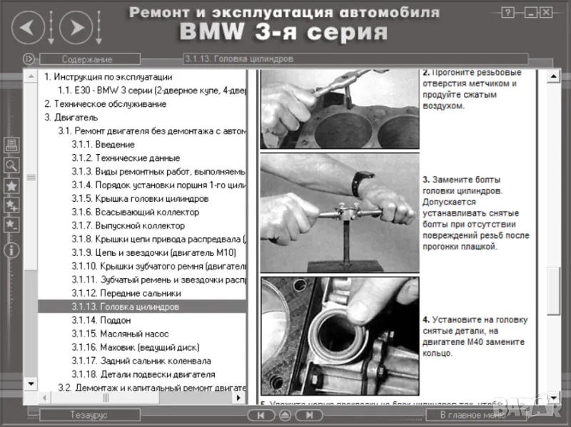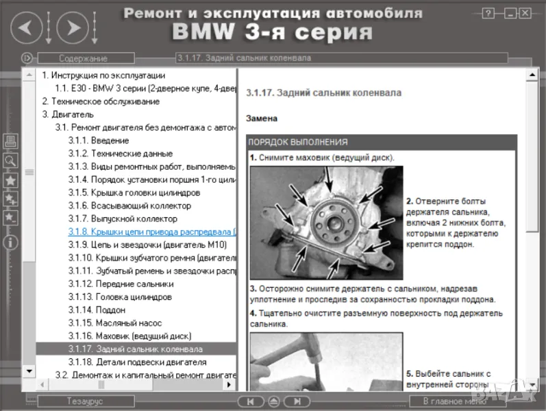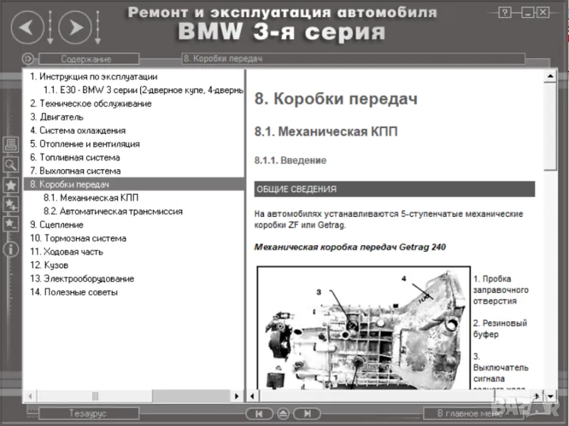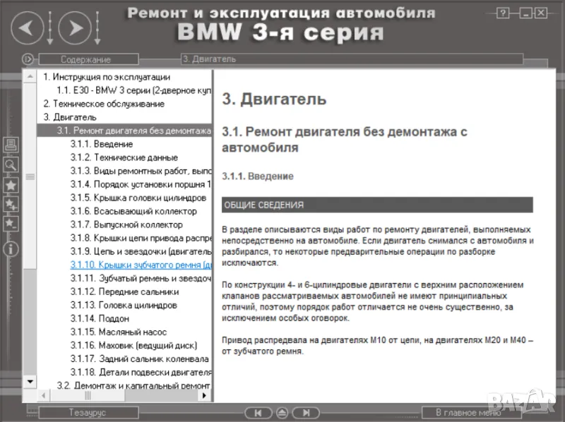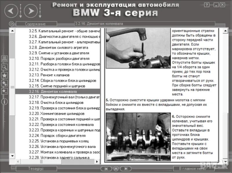 Също така са описани всички системи и агрегати на BMW, както и методи за техния ремонт, както и ел.схеми.