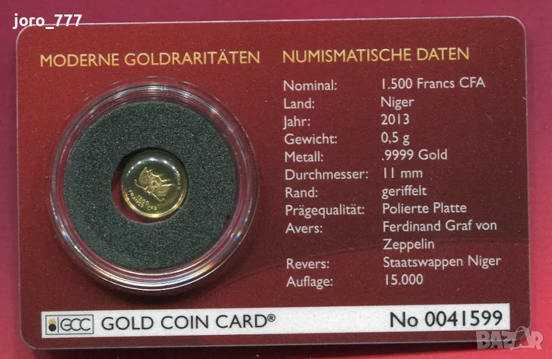 Златна монета "Фердинанд фон Цепелин" 2013 → Обява 47623074