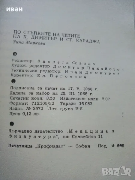 По стъпките на четата на Х.Димитър и Ст.Караджа - Зина Маркова - 1968г. → Обява 47623458
