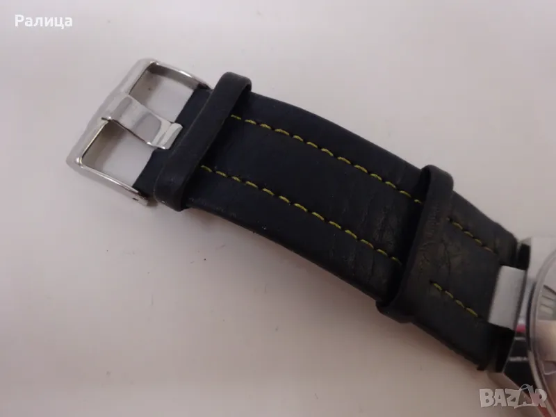 Кварцов часовник Jacques Lemans с оригинална каишка от естествена кожа, цялта каса е от неръждаема стомана, с брандирана коронка, диаметър на касата - 44 мм, с нова батерия