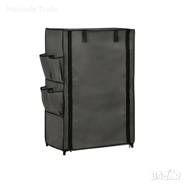 5-местен стелаж от плат с плат отпред, който се затваря с цип, докато когато не се използва може да се сгъне и закрепи с хриц-храц лента, крака, за да не опира в пода и практични външни джобове- джобове за малки предмети. Рамката е издръжлива метална, а дизайнът е модерен.