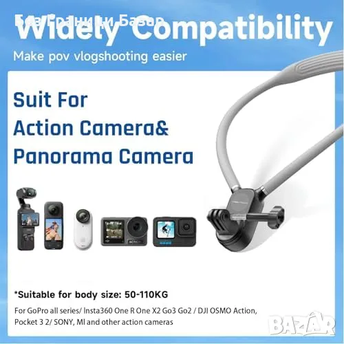 Нова Шийна стойка за екшън камери - GoPro, DJI, Insta360 Универсален държач
