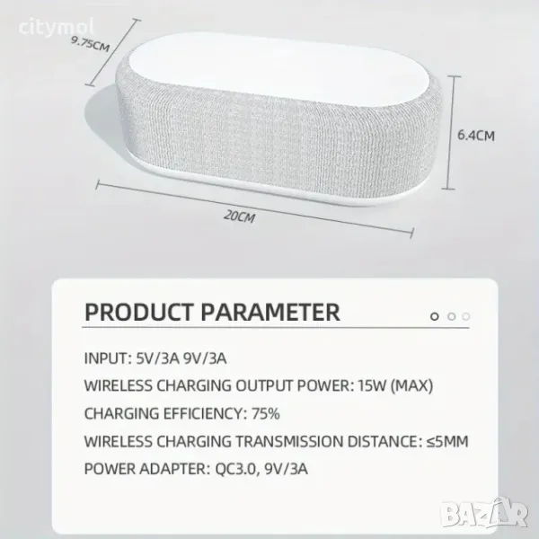 - Функции: Настолен часовник, нощна лампа, безжично зареждане, аларма, дисплей за температура