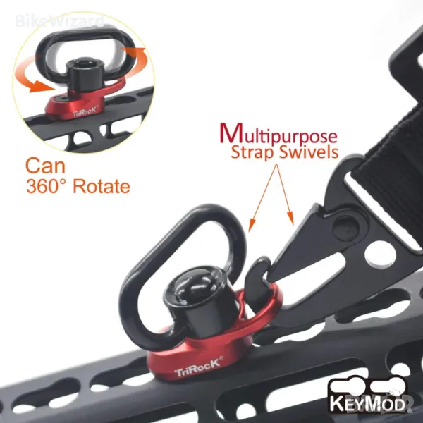 TRIROCK 1,25-инчов бутон за въртящ се контур QD Combo Red Sling Mount Base пасва на Keymod Rail с интелигентен отвор за Snap Clip Hook Spring
