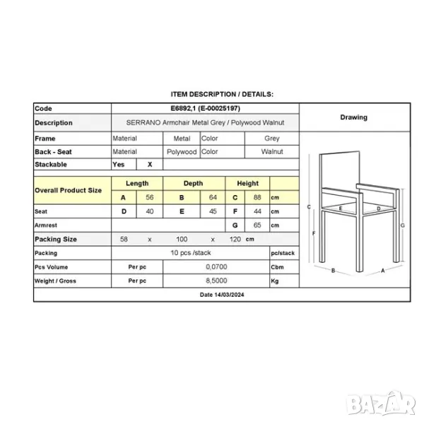 Размери на опаковката: 58x100x120cm -10 бр./стекОпция: Подреждане на фотьойла