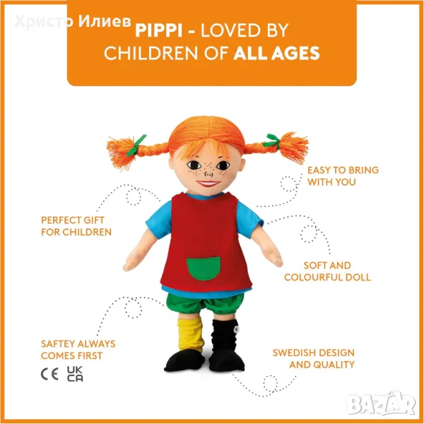 - ИДЕАЛЕН ПОДАРЪК ЗА БЕБЕТА И МАЛКИ ДЕЦА Възторжени писъци показват, че сте намерили идеалния подарък за момиченце с щастлива плюшена играчка Пипи за възраст над 10 месеца. Тази плюшена пухкава играчка отговаря на стандарта за играчки EN71 и химическите разпоредби в REACH и SVHC.