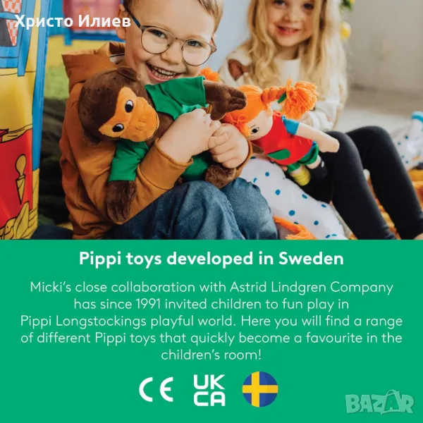 - ШВЕДСКИ ДИЗАЙН И КАЧЕСТВО Micki от Швеция и компанията Astrid Lindgren си сътрудничат в продължение на 75 години, за да проектират меки играчки за бебета, момичета и момчета, верни на оригиналните истории и илюстрации. Тази любима шведска марка все още очарова децата навсякъде.