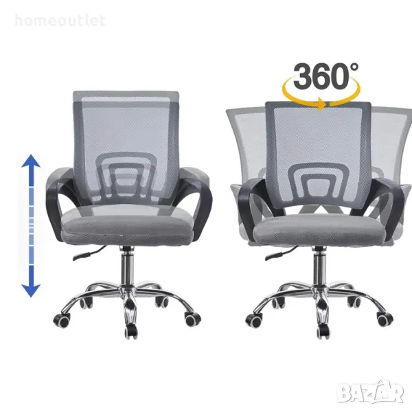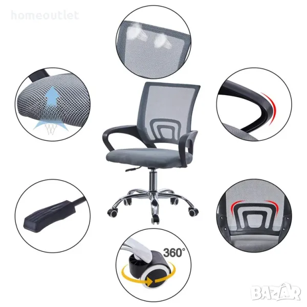 ЕРГОНОМИЧЕН СТОЛ: Подплатена седалка, облегалка с мрежа против изпотяване и подлакътници за удобна и безопасна работа.