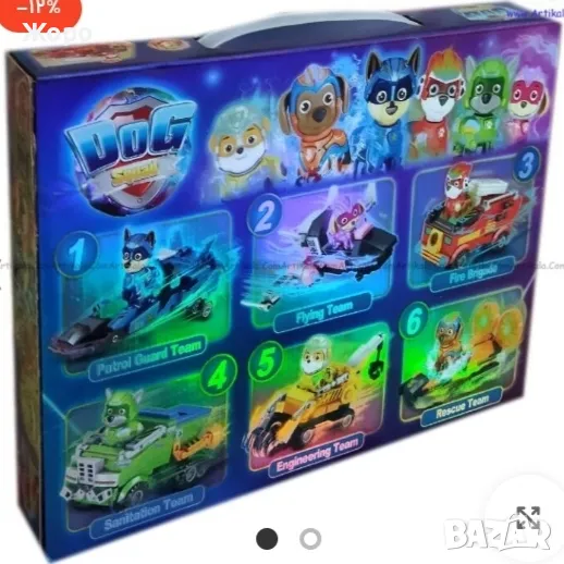 Конструктор "Героите от Пес патрул 6В1 състой от 6 различни конструктора които се продават поотделно ,всеки конструктор образува един от героите ,всичките шест конструктора заедно образуват целя отбор кученца