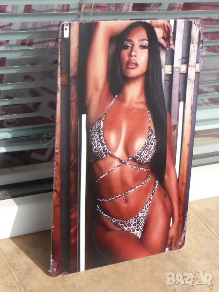 Метална табела еротика секси мацка по бански устни джуки брюнетка