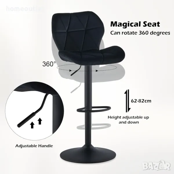 Столовете притежават SGS сертификат за безопасност. Въздушният амортисьор осигурява регулация на височината от 62 - 82 см.