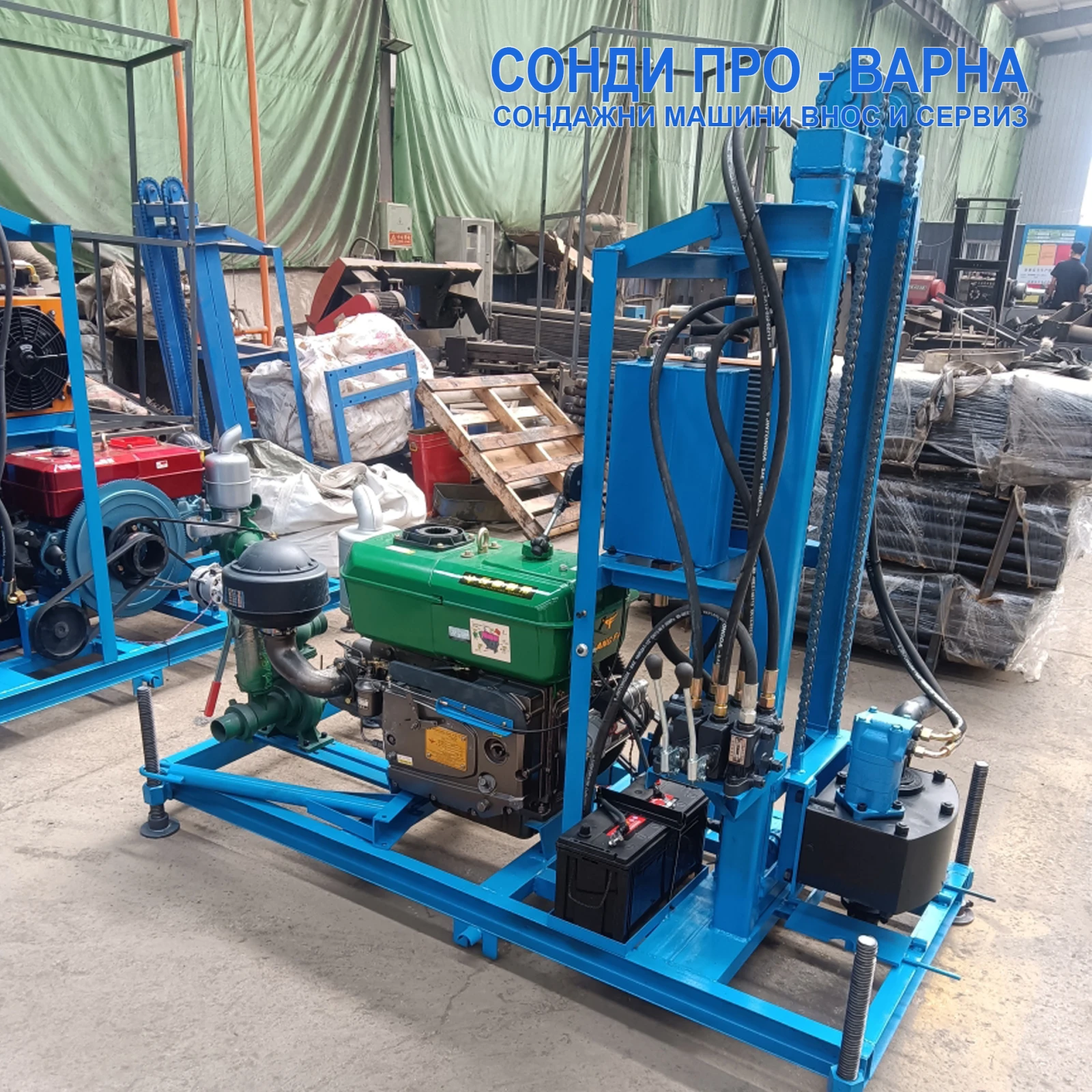 Сондажна машина Car-150CN, моля заредете видеото на адрес: youtu. be/48LMzmqnoVw - Други модели сондажни машини предлагани от Сонди Про-Варна, може да видите в страницата ни: tampers. mobile. bg . ХАРАКТЕРИСТИКА: ЗАДВИЖВАНЕ: Дизелов двигател 40HP, едноцилиндров с водно охлаждане, ел. стартер ЦЯЛО ШАСИ С КОЛЕЛА ТЕГЛО: 620 КГ . МАКСИМАЛЕН ДИАМЕТЪР НА ПРОБИВАНЕ: 80 ММ-300 ММ МАКСИМАЛНА ДЪЛБОЧИНА НА ПРОБИВАНЕ: 100 МЕТРА (водна промивка) ИЗПИТАНО до 75 метра! МАКСИМАЛНА ДЪЛБОЧИНА НА ПРОБИВАНЕ: 50 МЕТРА (сух метод с въздушно сондиране с мощни компресори, захранващи пневматичен ударник) МАКСИМАЛНА ДЪЛБОЧИНА НА ПРОБИВАНЕ: 35 МЕТРА (сух метод с шнек) . ГАБАРИТ: 1900 х 900 х 1940 ММ ТРАНСПОРТЕН ГАБАРИТ: 1930 Х 1000 Х 1900 ММ (1 САНДЪК) 640КГ СОНДА ТРАНСПОРТЕН ГАБАРИТ: 1670 Х 800 Х 550 ММ (2 САНДЪК) 470КГ СОНДАЖНИ ТРЪБИ ВОДНА ПОМПА: 2. 2 КВ . ВОДНА ПОМПА: ДА, задвижване от двигател ХИДРАВЛИКА: Помпа Hydraulic CN ВЪРТЯЩ МОМЕНТ НА ГЛАВАТА: 2200-3000 Nm СКОРОСТ НА ВЪРТЕНЕ: 40-65 об/мин СОНДАТА Е С ПЪЛНО ХИДРАВЛИЧНО УПРАВЛЕНИЕ - теглителна сила: до 3* тона ВОДНО ПРОМИВАНЕ: ДА */** Съгласно спецификация на завода производител. . БАЗОВИЯТ КОМПЛЕКТ СЪДЪРЖА 100-МЕТРОВ КОМПЛЕКТ: - 100 МЕТРА СОНДАЖНА ТРЪБА с диаметър 50MM x 1500ММ - 3 БР. ГЛАВИ 100 МM и 133 ММ за пробиване на земя - 1 БР. ГЛАВА 133 ММ за пробиване на скала с твърдосплавни пластини . ОПЦИЯ (1): + 1200 лева с ДДС за 40-МЕТРОВ КОМПЛЕКТ: - 40 МЕТРА СОНДАЖНА ТРЪБА с диаметър 50MM x 1500ММ . ОПЦИЯ (2): Пълно Техническо обслужване (Ремтехстрой Груп): +1500 лева с ДДС, включва пълно обслужване на сондажната машина със западни масла и хидравлично масло по указание на завода съгласно предписания DIN. Зареждане с антифриз и гориво, тест на възли, хидравлика, дизелови двигатели (основен и за движение) и скоростна кутия. Пълна проверка, настройка и тест на механичен съединител. Пълно гресиране на мачта, на сух редуктор (херметизация), на водещи ролки задвижване и други механични възли. Изпълнение: 2-3 работни дни в сервизна база Ремтехстрой Груп - град Варна. . ТЕХНИЧЕСКИ РЕАЛНИ ПАРАМЕТРИ НА СОНДИРАНЕ МАКСИМАЛЕН ДИАМЕТЪР НА ПРОБИВАНЕ: 80 ММ-300 ММ . ВОДНО СОНДИРАНЕ (WATER FLUSH) ДИАМЕТЪР НА ОТВОРА - РЕАЛНО ПОСТИЖИМА МАКСИМАЛНА ДЪЛБОЧИНА 80 - 100 ММ → ≈ 90 -100 М 100 - 150 ММ → ≈ 70 - 95 М 150 - 200 ММ → ≈ 50 - 75 М 200 - 300 ММ → ≈ 35 - 55 М *ЗАБЕЛЕЖКА: Водно сондиране е най-ефективният метод при този модел, тъй като мощният 40 к. с. двигател осигурява стабилен въртящ момент и достатъчен дебит на помпата. **ЗАБЕЛЕЖКА: Ако почвата съдържа твърди пластове, каверни или скали, тези стойности спадат чувствително. . ВЪЗДУШНО СОНДИРАНЕ (DTH AIR DRILLING, СУХ МЕТОД С МОЩНИ КОМПРЕСОРИ И ПНЕВМОУДАРНИК) Този модел не е специално оборудван за DTH (ударно) сондиране, но може да използва външен пневматичен ударник + компресор. ДИАМЕТЪР НА ОТВОРА - РЕАЛНО ПОСТИЖИМА МАКСИМАЛНА ДЪЛБОЧИНА 80 - 100 ММ → ≈ 30 - 50 М 100 - 150 ММ → ≈ 25 - 40 М 150 - 200 ММ → < 30 М *ЗАБЕЛЕЖКА: Този модел не е оптимизиран за въздушно/DTH сондиране: няма хидравличен натиск при пробиване, няма отделен въздушен ударник и компресорът, който ще използваш, трябва да е доста мощен (≥ 10 15 m³ /min), за да произведе достатъчно разход/налягане. Финалната реализация на DTH пробиване ще бъде значително по‑ ниска от номиналните 50 м, освен при много мощен компресор. **ЗАБЕЛЕЖКА: Заключение за въздух: (1) Няма да получиш висока производителност (бавно пробиване, много почистващи паузи) (2) Реална дълбочина рядко надхвърля ~40-45 м дори за по‑ мек материал → Препоръка: въздушнот