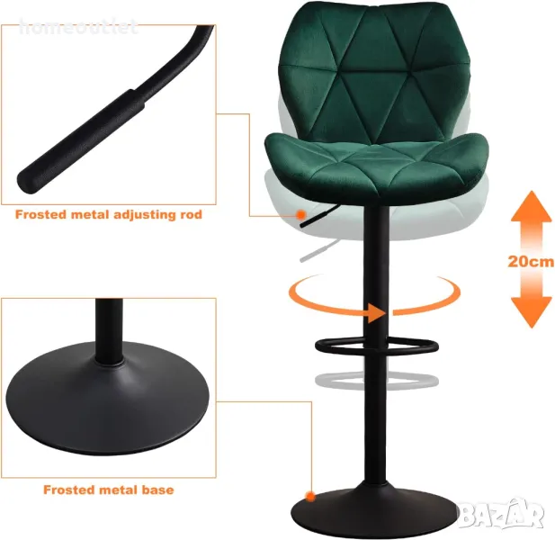 Столовете са изработени от висококачествена кадифена тъкан, която е удобна, мека и щадяща кожата. Дизайнът на диамантен модел добавя модни елементи, изящни ръчни шевове. Седалката приема формата на тялото, като я прави изключително комфортна